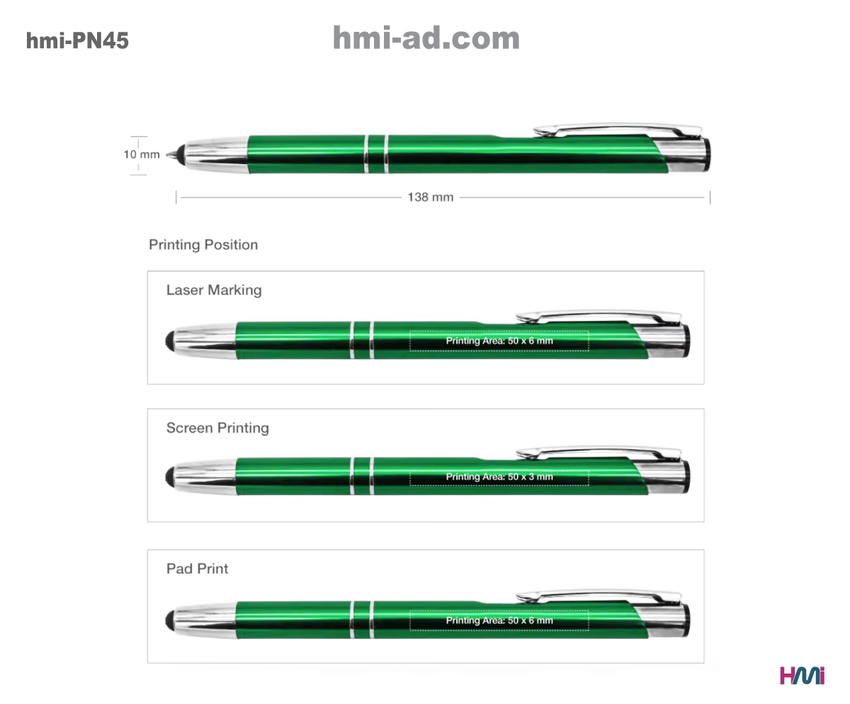 Aluminum Pen 45 Printing Area Details: hmi-PN45