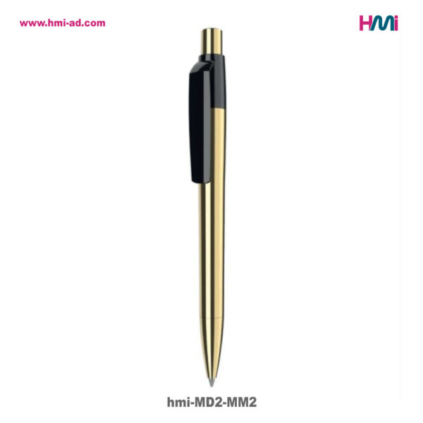 Golden Metal Ball Pen MD2 from Maxema, is a mood metal pens series made in Italy which we offer on hmi-ad. What else do you expect to have from a promotional premium pen. The also used sturdy metal for their creations. They are strong and secure to utilize as a result. The gold metal had been specifically fashioned inside the barrel. As a result, the entire barrel has a shiny diamond mirror surface. The tip and barrel both have the same golden hue. The push button on the pen is similarly gold-plated. As a result, it makes the pen appear expensive. The ball pen’s clip was made of ABS plastic in addition to the barrel. It’s dark. The clip does, however, also have a shiny surface. Options for screen printing and UV printing are included.