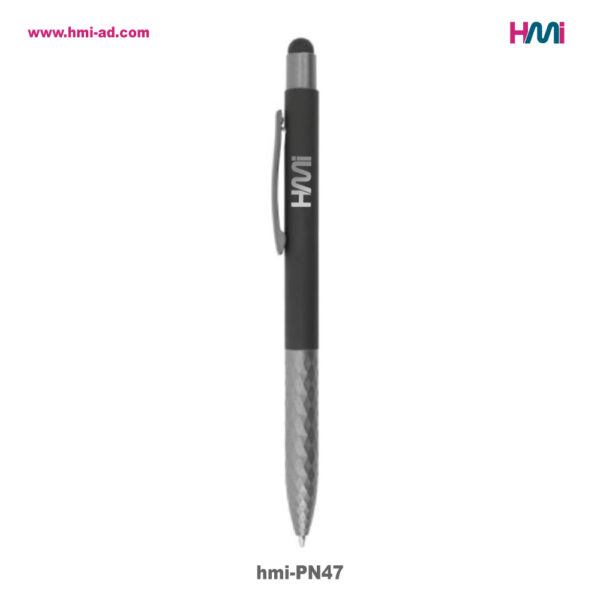 Promotional Stylus Metal Pen with nice Texture Grip available in large stock in Germany ready to be branded with your logo on hmi-ad.
