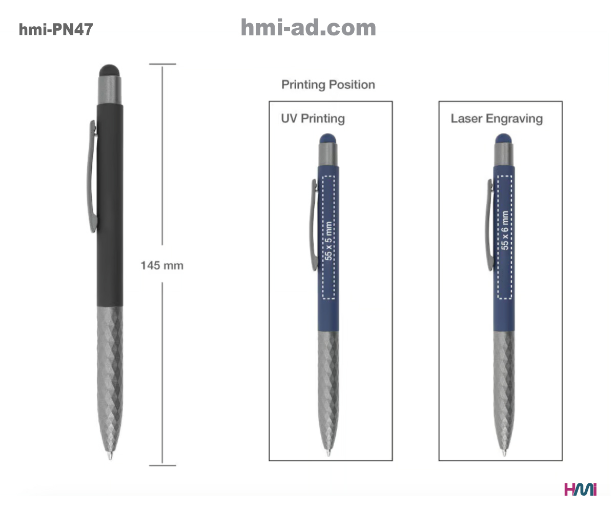 These Stylus Metal Pens with Textured Grips can be printed with your brand logo, message, or any other type of information you like. Transforming them into an influential marketing instrument is one of the most important key elements why this item is so much famous in our website. Whether you like distribute them at trade show, or exhibitions, corporate gatherings, or as part of a promotional campaign, it can really help your brand to be bolded by the receivers of this product.