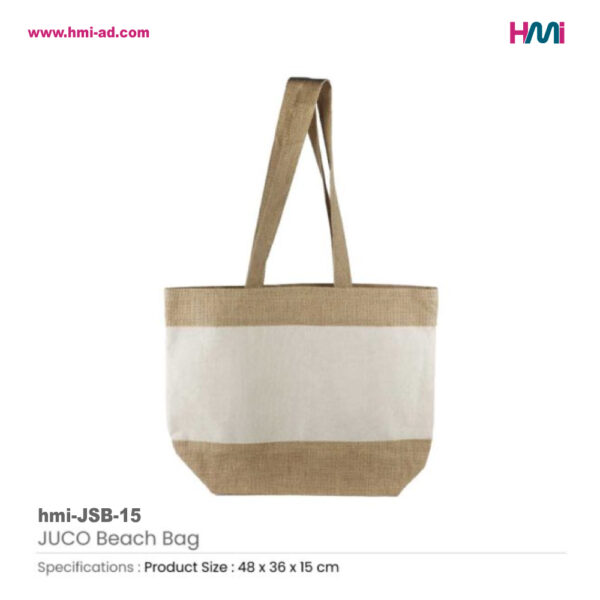 One of the best Promotional beach bags which is known as Large totes designed to be worn over the shoulder, beach bags typically have two straps rather than one. Sir Promotional Beach bag is made from great Eco-friendly material available in large stock for fast branding. The bottom of promotional beach bag 15 features a gusset that allows it to stand on its own and maintains the bag’s structure so that it maintains its upright position when it is set down and not being used. Branding on this promotional Jute and cotton material can help your brand visibility and attract more customers to your business. These promotional beach bags are the kinds of items that brands choose to sell at retail or give away as presents to their customers because of great material made from. Printing or embroidery of any of our stock options can be put into a ready-made beach bag in a short amount of time to produce a personalized product. This can be done with the promotional beach bag which we offer at hmi-ad.