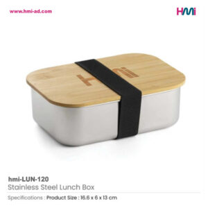 It is a great choice also for companies who are looking to provide their customers or their staff with a healthy and attractive mealtime option. Using this chance to do advertising or self branding is a professional way of marketing which you can always take benefit of it. Our promotional Stainless Steel Single-Compartment Lunch Box with Bamboo Lid and Black Elastic is an amazing way to do marketing and also present your brand at the same time. Our bamboo lunch box 120 is a striking promotional product because it blends the natural beauty of bamboo with the strength and hygienic properties of stainless steel which goes in Eco-Friendly list.
