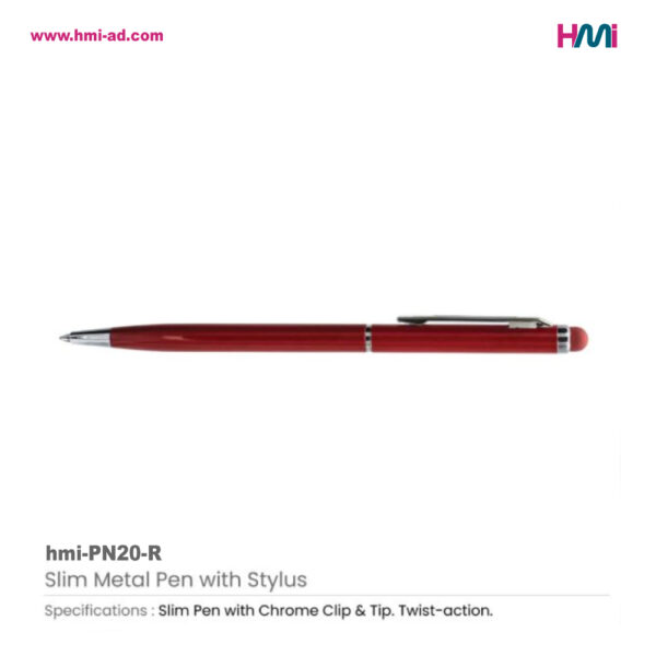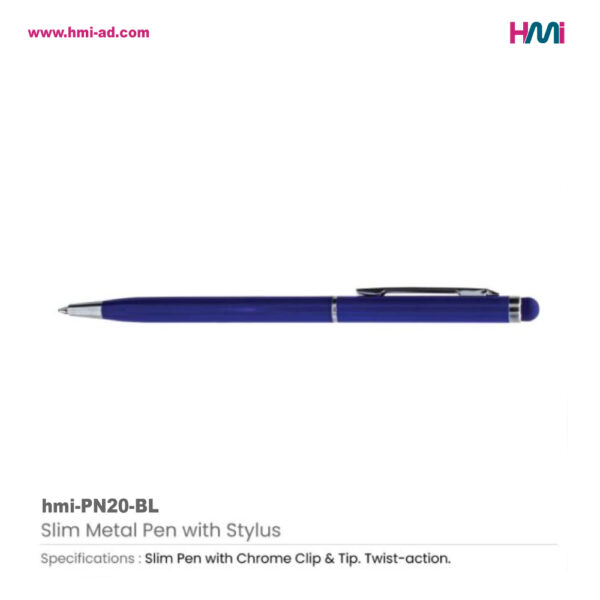 Promotional Metal Slim Pen 20, is one of the best promotional merchandise in Germany which we offer on hmi-ad. You can have them branded with your logo, company slogan, business contact info, or any other customized design. You can wither print or engrave your custom logo on this promotional pen. Available in a large stock with different colours. In addition you can order this promotional pen with express printing and get it within only 24 hours at your door step.