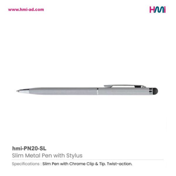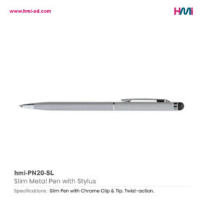 This particular Pen comes with a silver metal finish and a stylus design which makes this item looking nice and great. By manufacturing this product, they used a metallic material that was glossy to make. That is the reason it looks shiny and strong at the same time offering a great writing experience. The barrel of this pen is a thin high quality metallic tube. The barrel is vibrant and slim, filled up with great quality ink. The tip of this promotional pen is silver. This Promotional metal pen is known as 2 in 1 gift item. Therefore, it includes a stylus and a ball pen options. This promotional skinny and slim pen has a stylus that is located at the top for using on any type of touch screen devices. It shares the same hue as the barrel in color. You can use it on any touch screen surface, such as tablets, smartphones, or other devices.