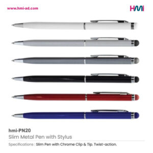 Promotional pens, is what many people search to order as their giveaway, self branding or promotional gift. Therefor we have introduce the slim Metal pen 20. A great promotional Pens, made from great Metal material, with light weight but still keeping all the quality in writing head. A great promotional pen to be branded with your logo, your company name, or contact info.