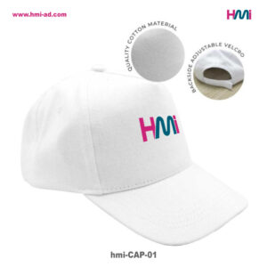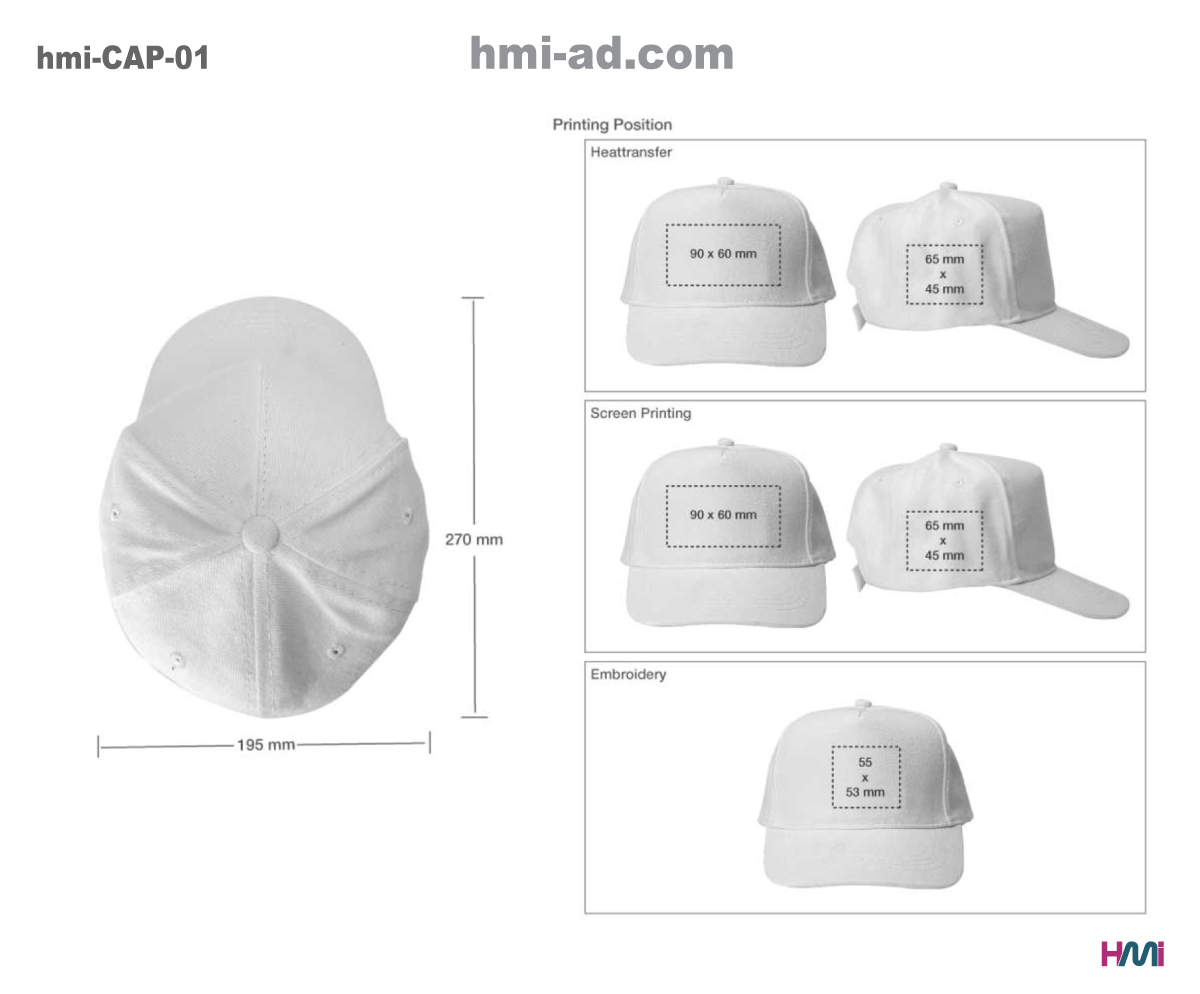 Great Promotional white cotton cap with different branding and printing options available with fast production in Germany on hmi-ad. Get your own customized Promotional White cotton cap printed with your custom logo, in Germany.
